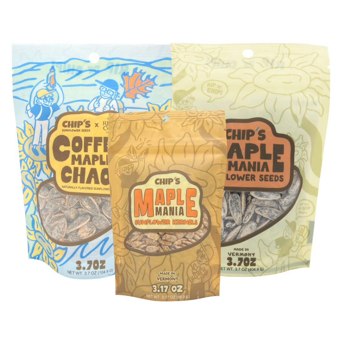 Try all three flavors in one snack-ready bundle. Get the energizing crunch of our Maple-Coffee Caffeinated Sunflower Seeds (with 60mg of natural caffeine), the smooth sweet-and-salty taste of our Maple Sunflower Seed Kernels, and the bold maple flavor of our classic Maple Flavored Sunflower Seeds.